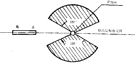 4.3.3 指點信標(biāo)臺向空中發(fā)射垂直扇型波束。其覆蓋區(qū)為,高度50—100m時,縱向?qū)挾葹?00—400m;高度200—400m時,縱向?qū)挾葹?00—800m(圖 5)。